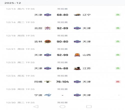 体育播报12月26日宣 CBA常规赛,天津104-76大胜同曦。