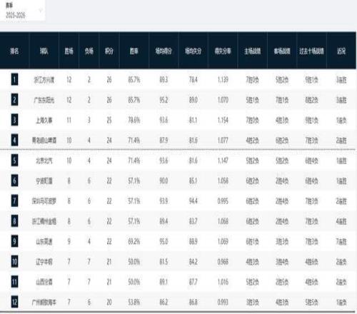 CBA积分榜最新排名出炉!广厦杀回第1:广东第2辽宁仅第10
