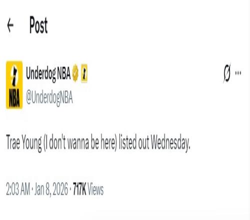 美媒调侃,特雷·杨缺阵原因:“我不想待在这了。”