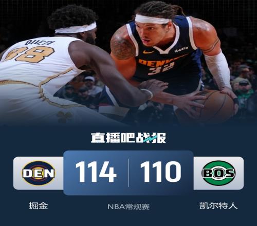 首节对决绿军开局稍显慢热小比分落后,不过后半段掘金阵容厚度的劣势导致轮换阶段落入被动,绿军在不足6分钟的时间里轰出21-12的攻势一举反超比分;次节双方开启拉锯多次互换领先,穆雷最后的三分帮助掘金扳平比分进入下半场。休息归来双方进攻双双回落,掘金9分钟里仅得11分,绿军期间稍胜一筹但优势也不大,但末节绿军突然哑火8分钟里仅得8分,掘金则送出22-8的攻势一举拿到两位数领先奠定胜局,末段掘金连续罚球不中但虚惊一场顺利收下比赛。最终,残阵掘金力克凯尔特人拿下比赛。