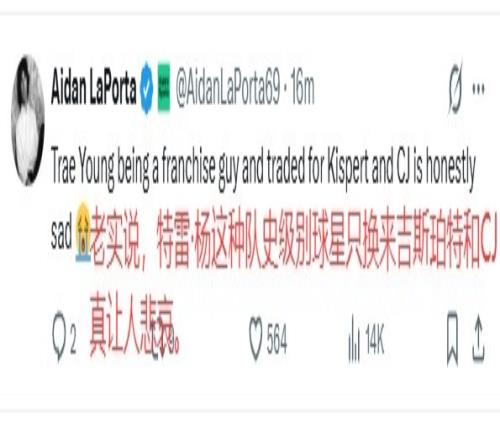 据ESPN名记Shams Charania报道,亚特兰大老鹰队将四次入选NBA全明星的特雷·杨交易至华盛顿奇才队,换来CJ·麦科勒姆和科里·基斯珀特。