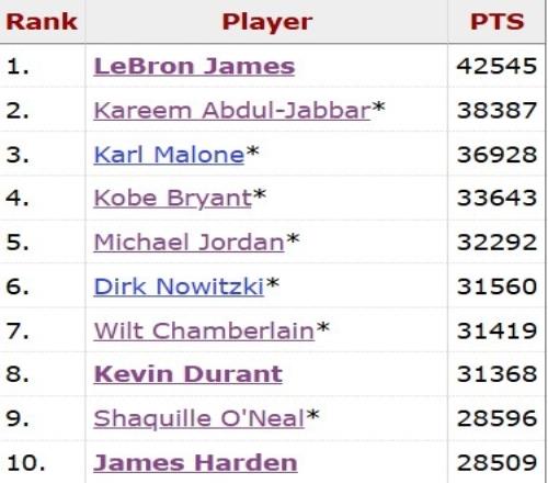 本场比赛过后,杜兰特常规赛生涯总得分来到31368分,距离超越张伯伦仅差52分。