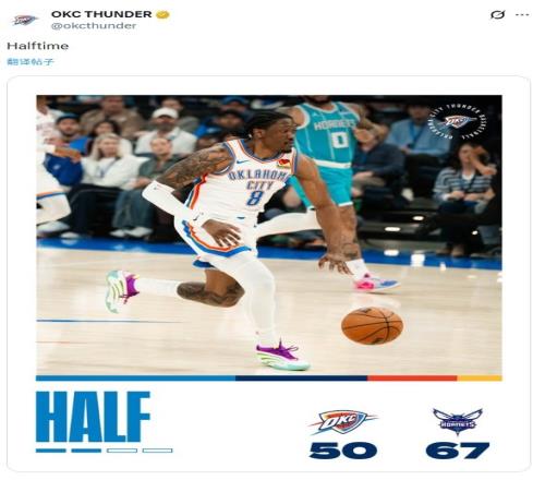 被打懵了雷霆半场5067落后黄蜂官推一开始给的图比分反了