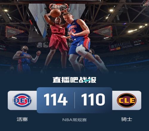 上半场,双方短暂相持,活塞突然哑火,骑士轰出10-0的攻击波确立优势,次节詹金斯成为奇兵,单节7中7独得21分,帮助活塞大举反击,半场战罢活塞66-56领先骑士10分。下半场,米切尔强势反弹,内外开花单节独得13分帮助球队缩小分差,末节活塞占得先机打出10-3的攻击波扩大优势,又是米切尔挺身而出连得7分率队打出11-0迅速迫近比分,关键时刻米切尔造成杀伤但2罚仅1中,詹金斯罚球锁定胜局。最终,活塞114-110力克骑士。