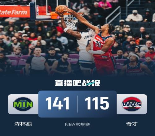 森林狼(23-13):爱德华兹35分6板3助4断、兰德尔22分3板4助、戈贝尔18分14板4帽、麦克丹尼尔斯12分5板5助3断、克拉克12分2板2助3断、里德9分7板3助、海兰德7分2板5助、康利7分2板3助、米勒6分3板、朱赞6分1板、迪文岑佐5分4板3助3断、英格尔斯2分2板
