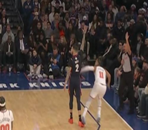 布伦森干拔三分落地后踩到大球右脚!后者吃到一级恶意犯规!