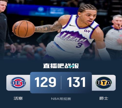 一开场,爵士内外开花打出9-2的攻击波占据主动,康宁汉姆得分助攻一肩挑带队追赶,活塞打出11-0的攻击波强势反超,次节活塞持续发力,康宁汉姆连送助攻率队将分差拉开到两位数,基昂特·乔治三分3连击还以颜色,半场战罢活塞68-67领先爵士1分。下半场,爵士火力全开,一波10-2的小高潮将分差拉开到两位数,乐福高效输出,末节爵士命中率下降,活塞连投带罚不断迫近比分,关键时刻小乔治完成准绝杀,爵士131-129活塞险胜过关,