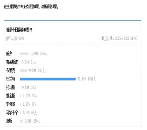 在主播票选中布莱克得到8票、唐斯得到2票。