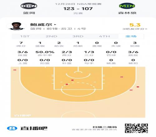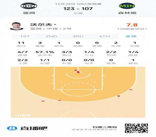 篮网首轮27号秀沃尔夫 登场16.8分钟