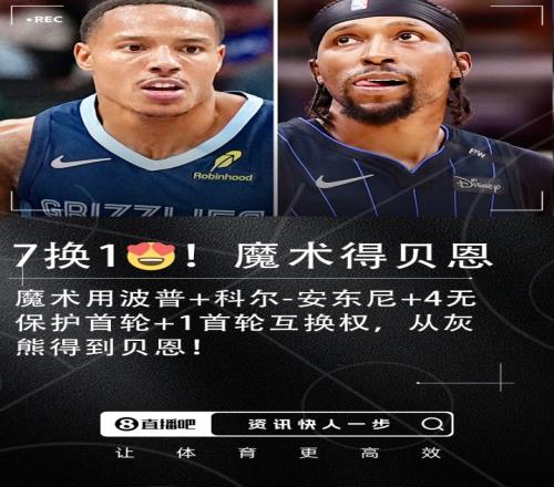 今年休赛期,魔术和灰熊完成重磅交易,魔术送出波普+科尔·安东尼+四个不受保护的首轮签+一个首轮签互换权,7换1得到贝恩。