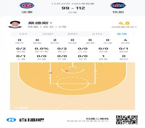 湖人次轮36号秀阿杜·蒂耶罗 登场4.6分钟