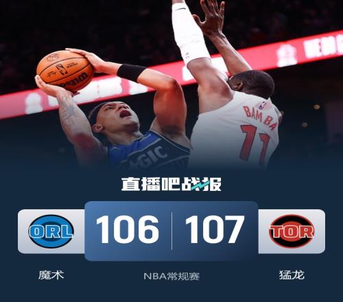 比赛上来,魔术就反客为主打出14-2的完美开局,整个第一节猛龙的进攻都很糟糕只拿到18分,次节猛龙依旧无法限制对手的攻势,分差一度达到了二十分,好在是节末状态回暖稍稍止血,半场结束时魔术仍领先11分;下半场回来,两队持续拉锯,分差一直保持在十分左右,末节猛龙没有放弃,他们一波13-0的小高潮直接完成反超,关键时刻班凯罗绝杀三分不中,最终猛龙险胜魔术迎来连胜。