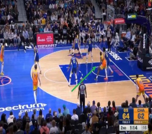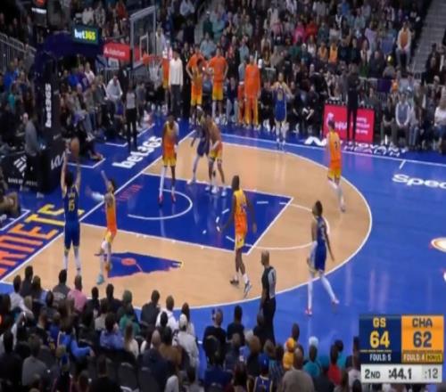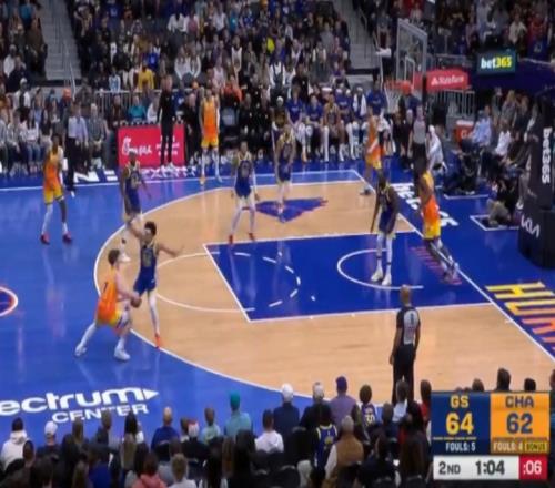 库里三分不中,桑托斯抢到前场篮板并且救球成功!