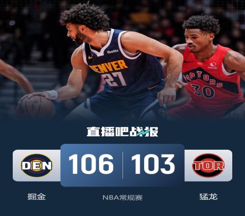 此役一上来两队短暂纠缠,穆雷连中三分连投带传,瓦兰首发出战状态火热,两人联手率队逐渐占优,首节结束时掘金领先9分,次节回来,双方延续火力拉开对攻,奎克利连投带罚单节独得12分,但沃特森突然爆发强势回应,半场战罢,掘金保持9分优势。易边再战后掘金进攻失灵,猛龙一波14-1一度反超,瓦兰连中罚球后伤退,三节结束后掘金守住6分优势,末节上来,双方你来我往鏖战至决胜时刻,穆雷关键上篮打进,布朗两罚不中,英格拉姆打板三分压哨绝平无奈超时,最终掘金106-103险胜对手终结连败。