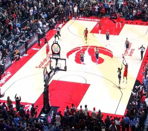 巴恩斯抢到篮板后长传前场的英格拉姆,后者接球神奇打板三分命中。裁判回看后,确认此球超时无效,全场比赛结束。