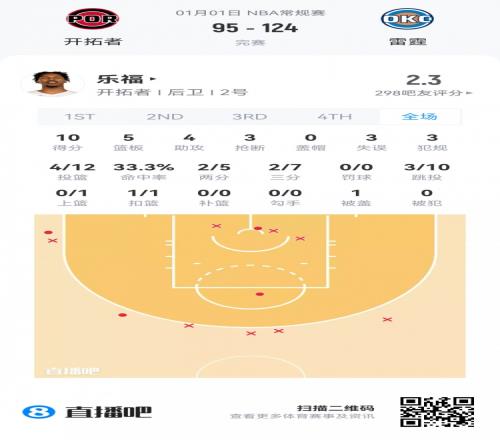 开拓者落选秀凯莱布·乐福 登场30.1分钟