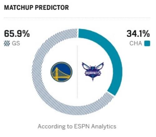 能否客场奏凯ESPN明日胜率预测:勇士高达65.9%黄蜂34.1%