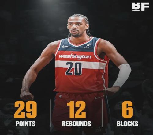 本赛季至今,萨尔为奇才首发出战36场比赛,场均出战28.6分钟,得到17.7分7.5篮板2.8助攻0.8抢断2.2盖帽1.8失误,三项命中率:49.8%,34.3%,71.2%。萨尔场均盖帽高居联盟第二,仅次于文班亚马(2.7)。