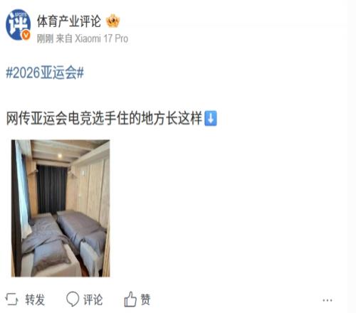 体育播报1月13日宣 今日微信公众号10个护腕神表示2026名古屋亚运会不设置亚运村,电竞选手被安排在知多市,其住宿环境十分感人。