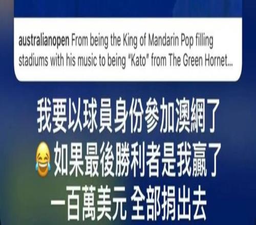 北京时间1月12日,澳网官方宣布:周杰伦将参加2026年澳网“一球制胜”,这也将是周杰伦的国际网球赛事首秀。