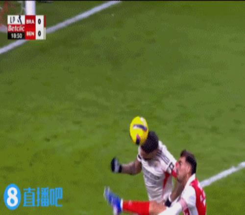 第24分钟,布拉加队员在拼抢中手部有动作。↓