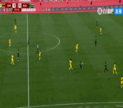 第7分钟,莫雷米禁区右侧得球起脚打门,皮球打在防守球员腿上折射飞进球门,南非1-0津巴布韦。↓