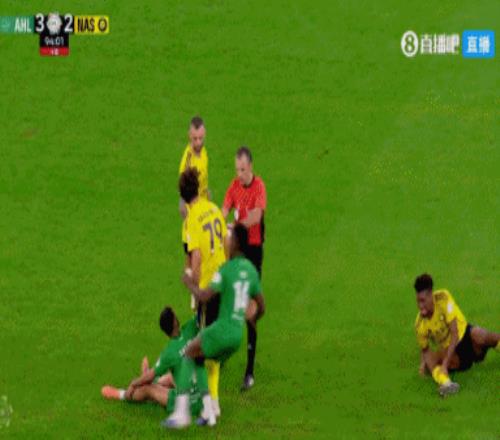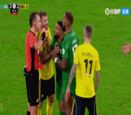 第90+8分钟,少一人的吉达国民断球反击,纳瓦夫作为最后一名防守队员将对手拉倒!主裁判先是吹了越位,但随后再次听取VAR意见,并没有越位,改判纳瓦夫红牌↓