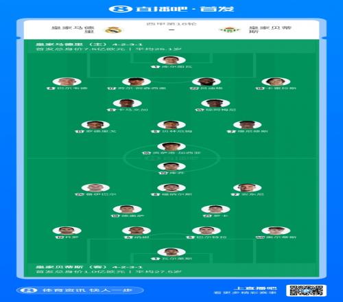 体育播报01月04日宣 北京时间今晚23点15分,西甲第18轮,皇马vs贝蒂斯,赛前两队公布首发阵容。