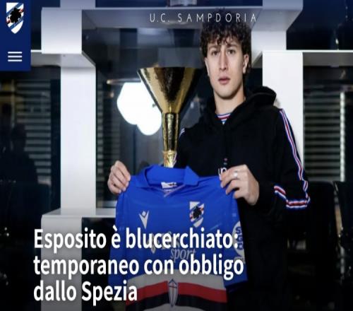 体育播报1月5日宣 意乙桑普多利亚俱乐部官方宣布,以先租后买的方式签下萨尔瓦托雷·埃斯波西托。