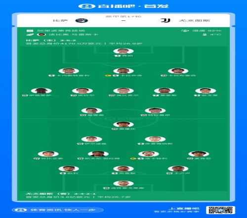 体育播报12月28日宣 本轮意甲,比萨主场迎战尤文比赛即将打响。赛前首发出炉。