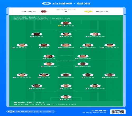 体育播报12月28日宣 北京时间今晚19点30分,意甲第17轮,AC米兰主场迎战维罗纳,赛前双方公布首发阵容。