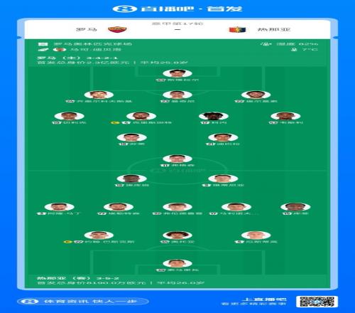 体育播报12月30日宣 意甲第17轮,罗马主场迎战热那亚,赛前双方首发公布。