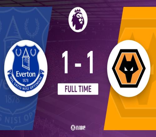 下半场补时9分钟。最终全场比赛结束,埃弗顿1-1狼队。