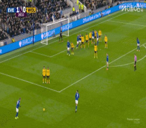 第22分钟,还是埃弗顿前场左侧定位球机会,后点位置基恩抢点头球攻门中柱↓