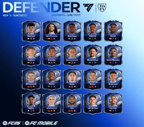 阿克利乌舍、多萨里、安古伊萨、巴雷拉、贝林厄姆、凯塞多、德容、迪亚斯、堂安律、埃万德尔、赫拉芬贝赫、格里马尔多、吉马良斯、赫伊别尔、若昂·内维斯、基米希、马赫雷斯、麦克托米奈、穆西亚拉、帕斯、恩梅查、奥利塞、奥尔索里尼、帕尔默、佩德里、拉菲尼亚、赖斯、萨拉赫、斯蒂勒、托利索、巴尔韦德、维蒂尼亚、尼科·威廉姆斯、亚马尔、伊尔迪兹
