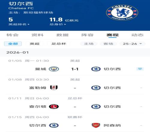1月1日,切尔西宣布马雷斯卡不再担任球队主帅,随后代理主帅麦克法兰率队1-1战平曼城,目前切尔西20轮积31分排名英超第五。