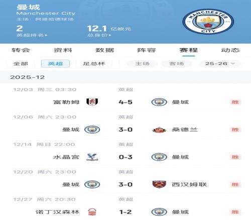 值得一提的是,12月的英超赛程中,只有曼城主帅瓜迪奥拉保持全胜。