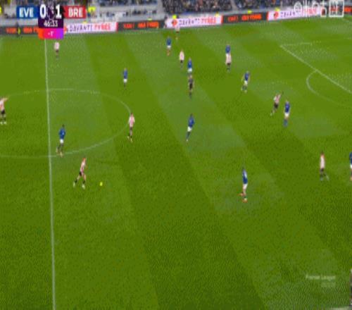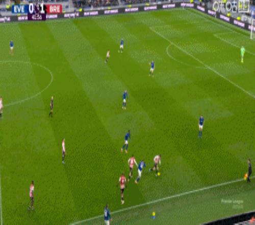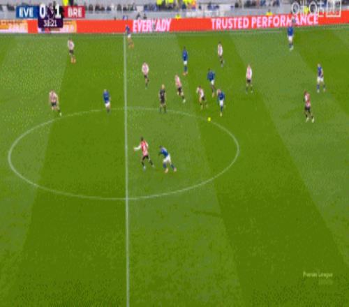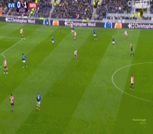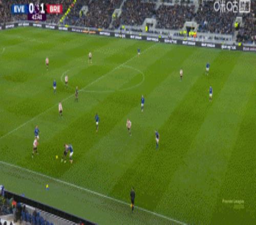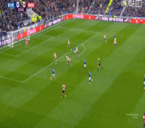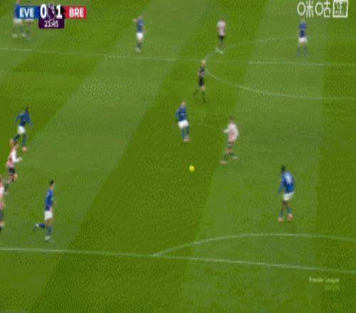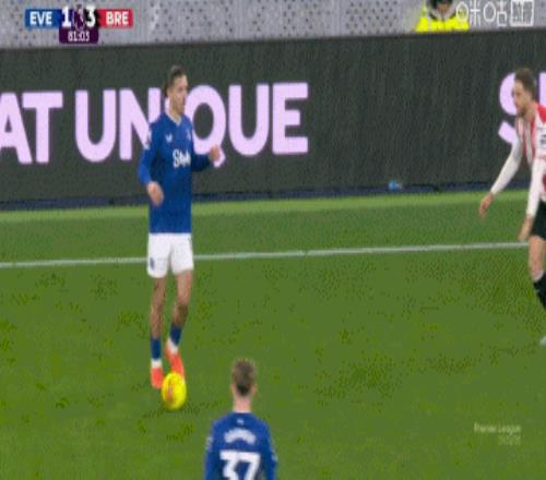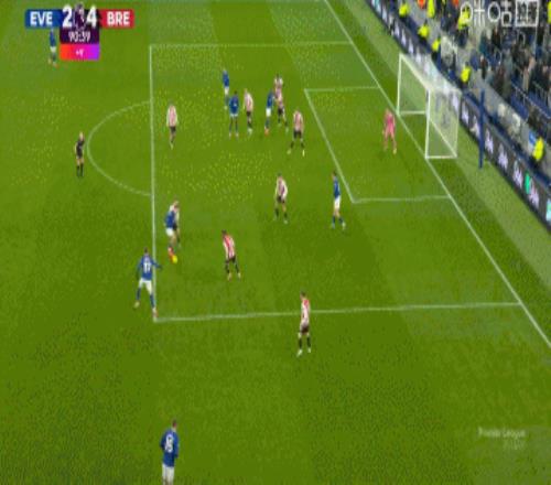 第90+1分钟,格拉利什禁区内晃动,传中到后点助攻巴里破门,埃弗顿2-4布伦特福德↓