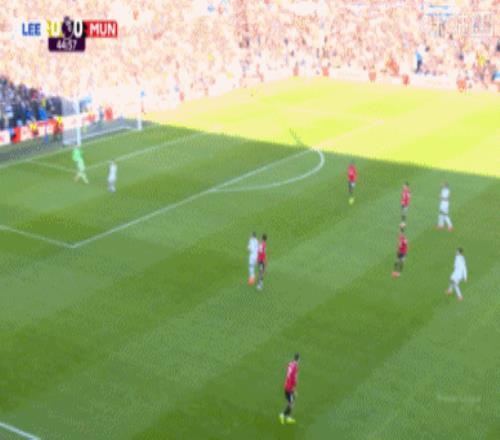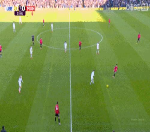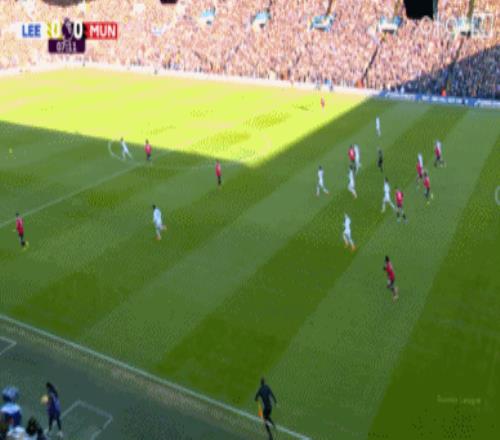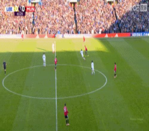 第6分钟,曼联右边路界外球,达洛特大力扔进禁区,第一点被利兹联球员解围,随后禁区线上乌加特头球吊门,皮球高出横梁↓