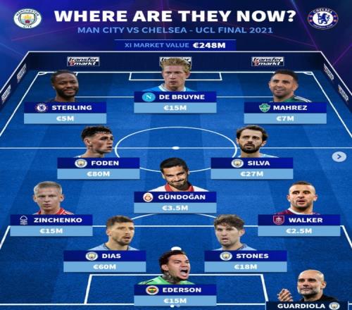 体育播报1月4日宣 切尔西将在本轮英超焦点战对阵曼城,《转会市场》也对比回顾了两队在2021年欧冠决赛的首发阵容,当前仅剩5人还留在各自球队。