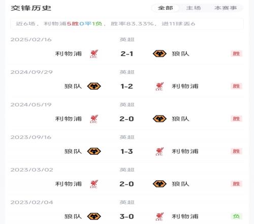 截至赛前,利物浦9胜2平6负积29分,排名英超积分榜第6;狼队0胜2平15负积2分,排名英超积分榜垫底。