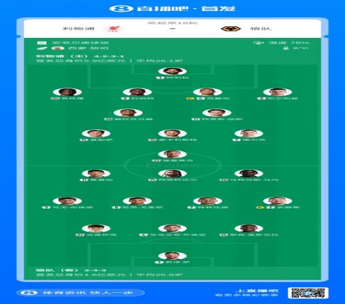 体育播报12月27日宣 北京时间今晚23点,英超第18轮,利物浦主场迎战狼队,赛前双方公布首发阵容。利物浦方面,基耶萨迎来本赛季英超首次先发,与埃基蒂克搭档锋线;索博斯洛伊因累计黄牌停赛。
