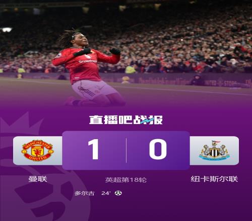 体育播报12月27日宣 英超第18轮,曼联坐镇主场老特拉福德球场迎战纽卡斯尔联。上半场,多尔古凌空斩破门收获处子球。易边再战,舍什科、霍尔先后中框,达洛特失良机。最终曼联1-0纽卡。积分榜方面,曼联29分追平切尔西、利物浦暂升第五,纽卡23分第11。