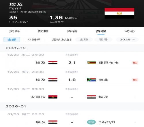 根据赛程,埃及将于3天后出战小组赛末轮,在这之后的一周出战1/8决赛。作为争冠热门球队之一,他们有望冲击赛事的最终阶段。