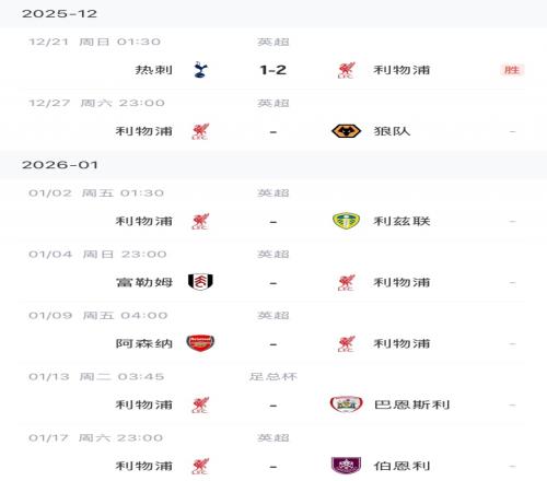 利物浦近期迎来各项赛事三连胜,先后击败了国米、布莱顿、热刺。