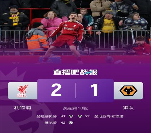 维尔茨首球!利物浦2-1狼队联赛3连胜+暂升第4 赫拉芬贝赫破门
