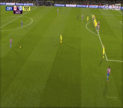 第55分钟,水晶宫左路打出撞墙配合后传中,德文尼小禁区线上得球转身凌空抽射打高。↓