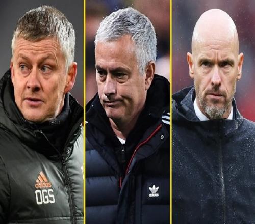 足球是圆的,所以足坛总有各种各样的巧合。就在滕哈赫在勒沃库森下课前的4天,另外两名前曼联主帅穆里尼奥和索尔斯克亚,在同一天被自己的东家所解雇。