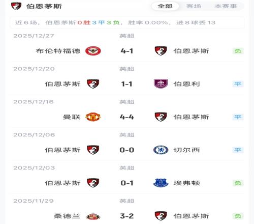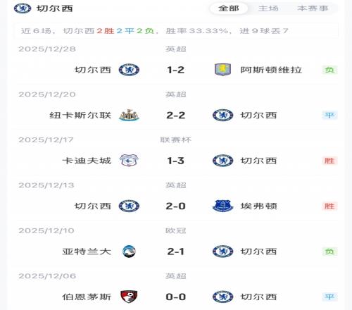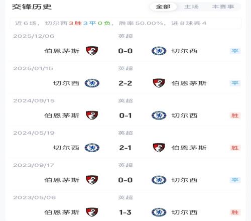 切尔西暂以29分排名第五,伯恩茅斯22分排名第十五。本赛季首次交手中,切尔西客场0-0战平伯恩茅斯。