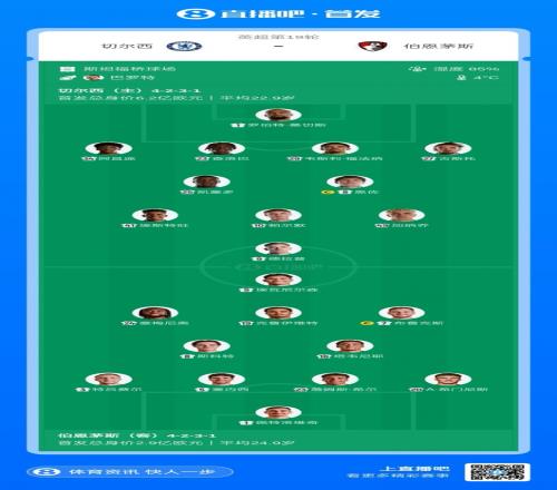 体育播报12月31日宣 英超第19轮,切尔西对阵伯恩茅斯,赛前首发公布。
